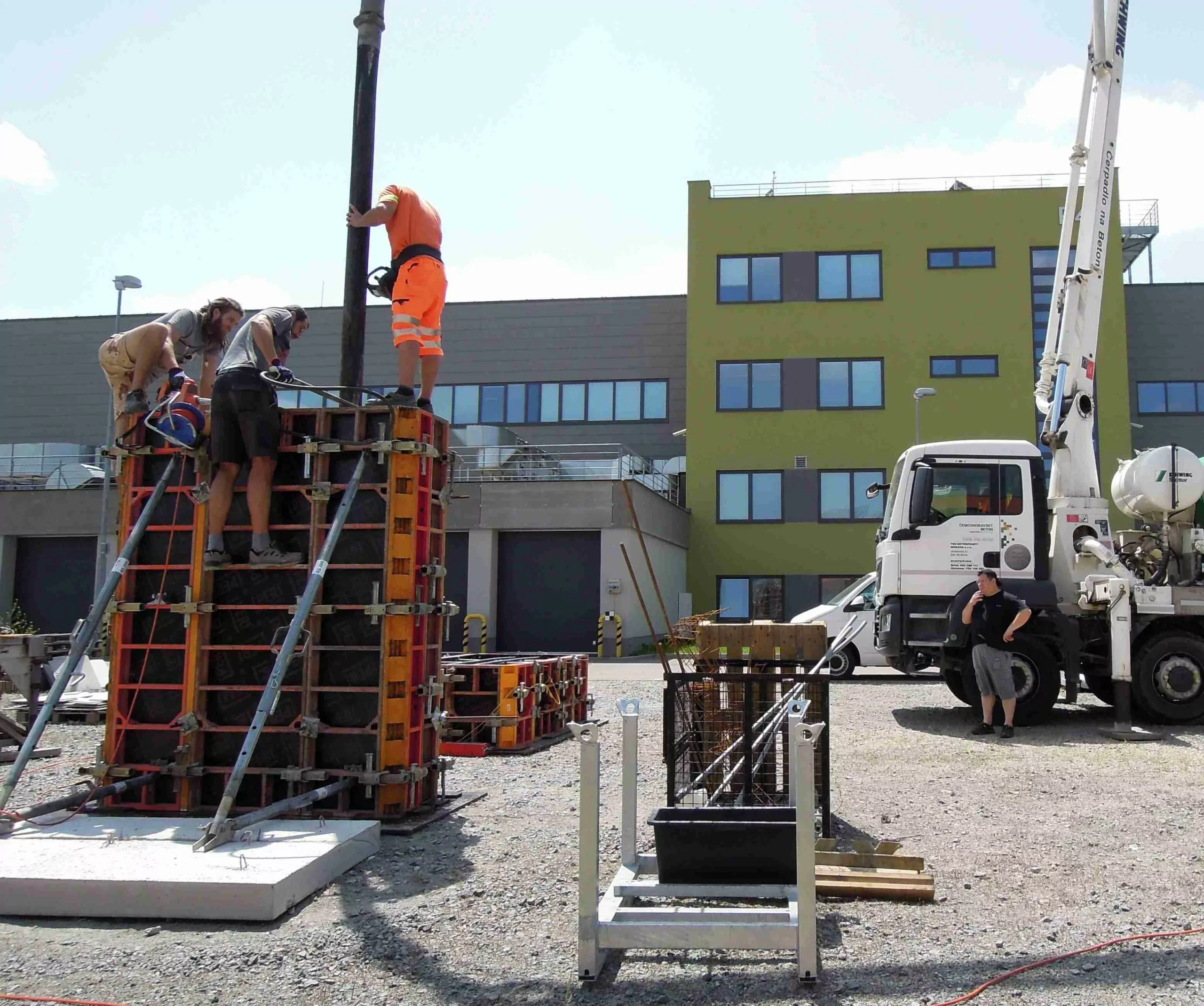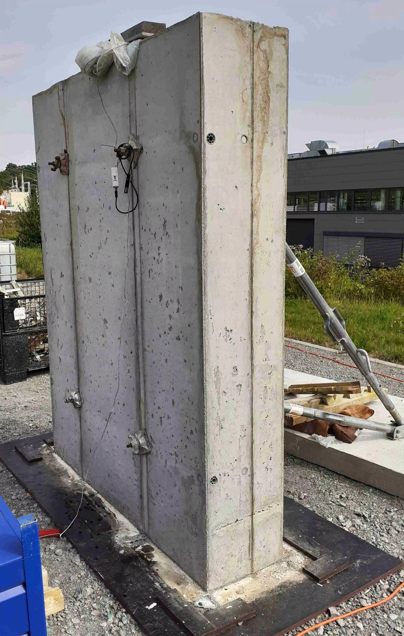 Pro potřeby experimentu byl na volném prostranství vyroben betonový blok s půdorysnými rozměry 1,8 × 0,45 m a s výškou 2,4 m, který představoval reálnou konstrukci. Poté byla ze stejného betonu v laboratoři vyrobena zkušební tělesa. Betonový blok byl po betonáži přikryt vlhkou tkaninou a PE fólií. Během prvních dvou dnů po betonáži byla tkanina kropena vodou. Blok byl ponechán v bednění přibližně jeden týden. Po odstranění bednění, včetně tkaniny a PE fólie, nebyl beton dále nijak ošetřován. Jádrové vývrty, z nichž byla připravena zkušební tělesa, byly odebrány přibližně dva měsíce po betonáži. Zkušební tělesa vyrobená pomocí forem byla po výrobě ponechána v laboratoři přikrytá vlhkou tkaninou a PE fólií.