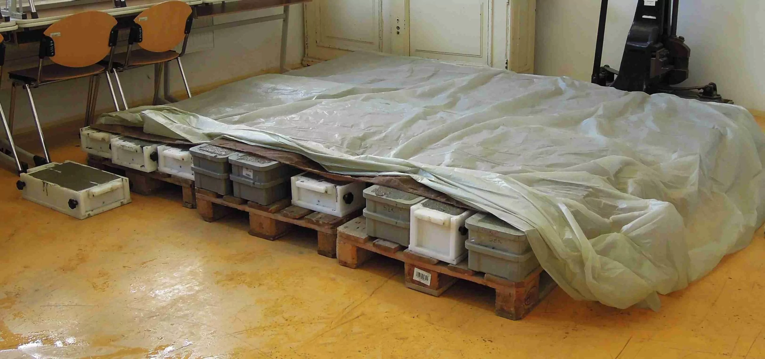 Základním cílem popisovaného experimentu bylo zjistit, jakým způsobem lze nejlépe (či nejsnáze) stanovit mrazuvzdornost betonu v konstrukci a současně se co nejméně odchýlit od postupu popsaného v normě ČSN 73 1322 [5]. V laboratoři byla vyrobena zkušební tělesa pomocí forem a také byly odebrány jádrové vývrty z betonového bloku umístěného ve venkovním prostředí, který byl zhotoven ve stejném čase a ze stejného betonu jako zkušební tělesa.