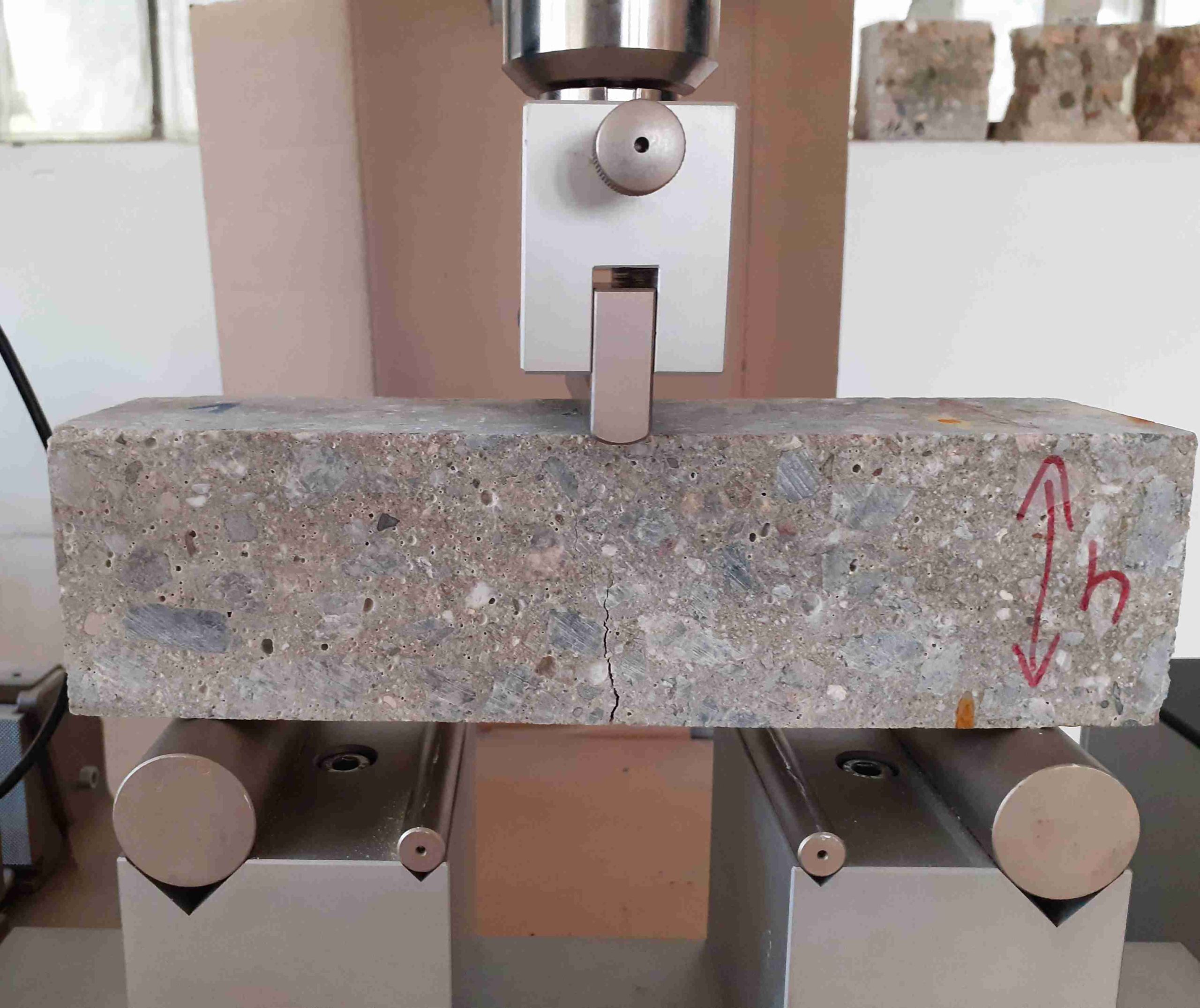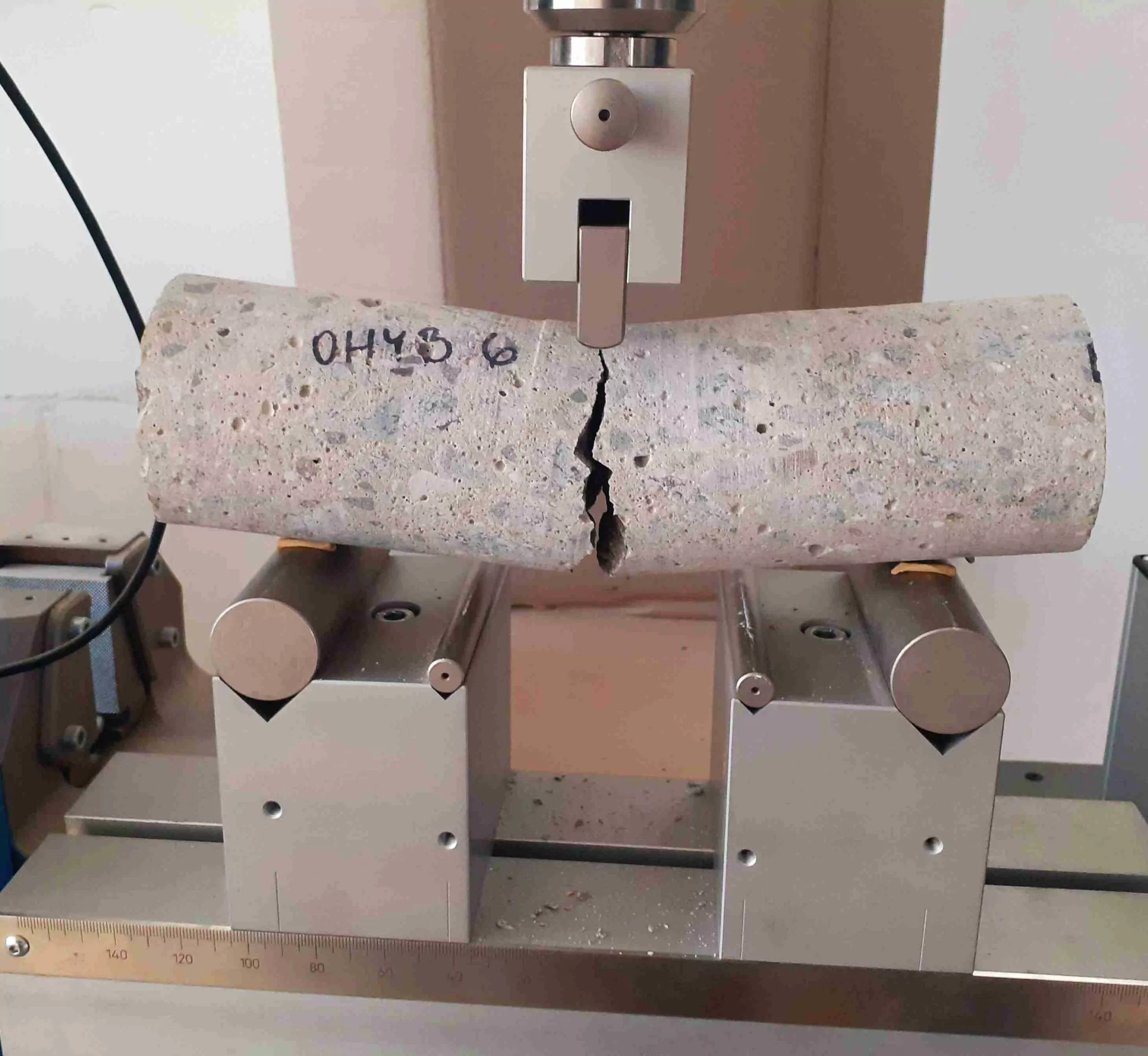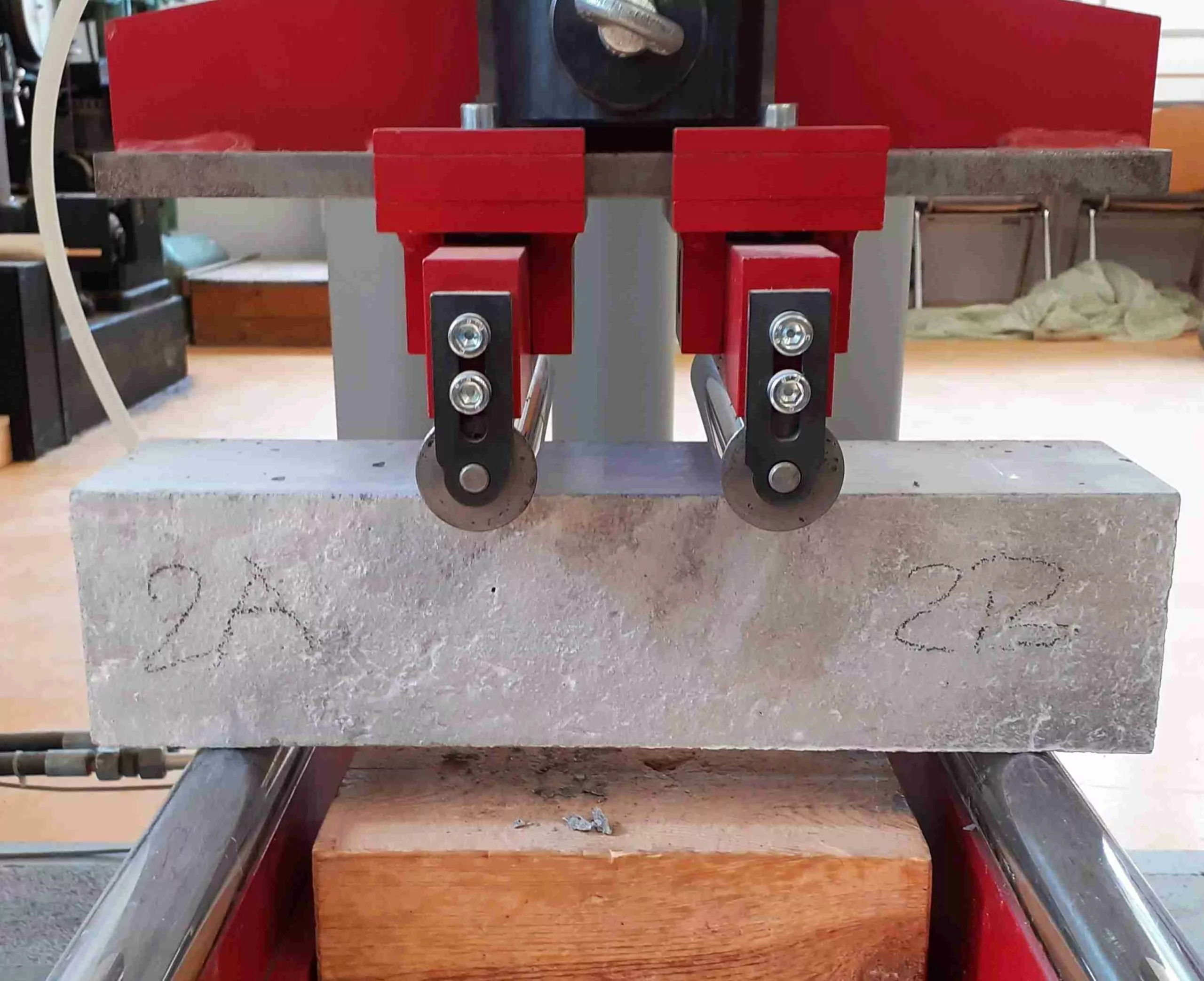 Zkušební tělesa sad Ref, Řez-ref, Řez95 a JV100 byla zkoušena pomocí čtyřbodového ohybu, přičemž vzdálenost podpor byla vždy 300 mm a zatěžovací válečky byly umístěny ve třetinách rozpětí.